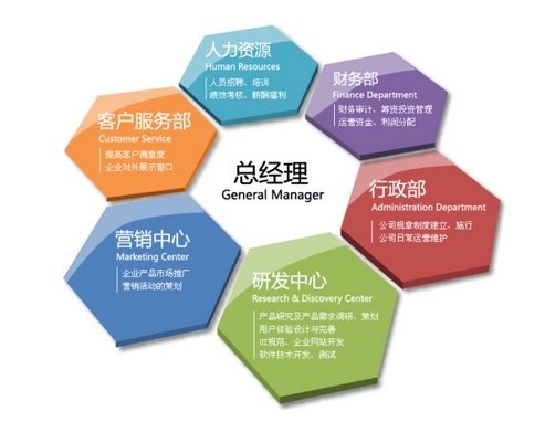 人力資源中心:組織公司人力資源開發與管理工作,為公司提供和培養合格的所需人才;負責公司的薪酬考核管理、人事管理、培訓管理等工作